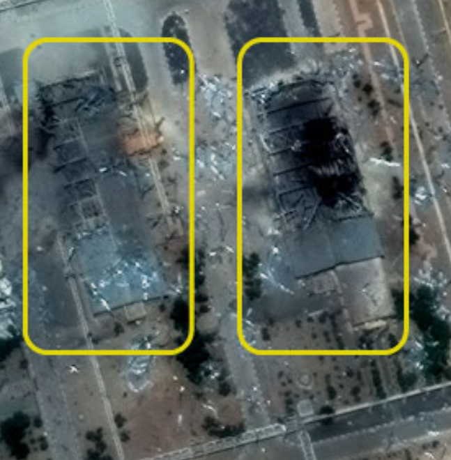 • 지상 시설 궤멸: 농축 시설로 향하는 진입로 건물을 비롯해 직원이 상주하던 본부 건물이 완파되었습니다. 최소 3개 이상의 주요 건물이 직격탄을 맞았으며, 시설 전체에 걸쳐 광범위한 화재 흔적과 잔해가 포착되었습니다.